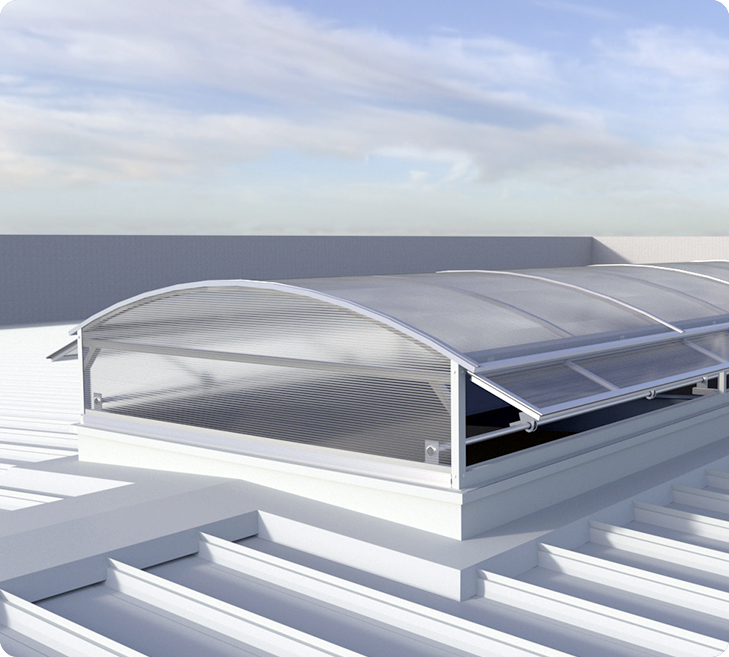 圓拱型電動排煙天窗、側開式電動排煙天窗